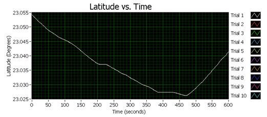 如先前所述,接收器的精確度,與可用的衛星訊號密不可分。也就是說,接收器的精確度可能在數個小時內大幅變化 (衛星訊號改變),但是其可重復性卻極小。為了確認我們的 GPS 接收器亦為如此,則可針對特定的模擬 GPS 波形執行多項測試。此項作業主要是必須確認,RF 儀控并不會對仿真的 GPS 訊號產生額外的不確定性。如下方圖 26 所示,當重復使用相同的二進制檔案時,我們所使用的 GPS 接收器將得到極高可重復性的量測。