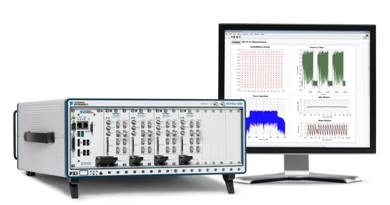 NI PXIe-5644R是業界首臺矢量信號收發儀(VST)。該VST的特點是高達80MHz的實時帶寬以及最高至6 GHz的中心頻率。該儀器同時包括可編程FPGA,可用于提高測試速度或實現各種實時算法,如快速傅立葉變換(FFT)、功率控制以及調制或解調等。完整的WLAN測試儀器的寬度為三個PXI Express插槽,并包括可用于待測設備(DUT)控制類型應用的數字I/O端口。