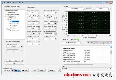 圖2. 利用NI WLAN分析工具包可方便地使用NI PXIe-5644R進(jìn)行測(cè)量。
