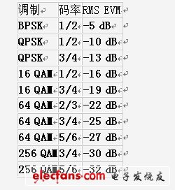 表1. 802.11ac中調(diào)制方式的RMS EVM要求
