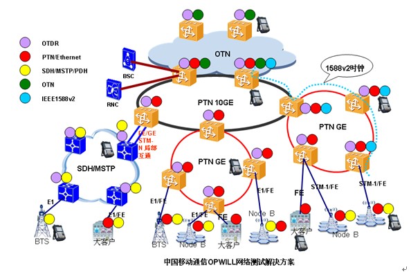 針對中國移動這一系列PTN網絡建設所形成的新型PTN規模應用,SDH/MSTP,PTN和OTN網絡長期共存的現狀,OPWILL針對中國移動通信的網絡現狀推出全系列網絡測試解決方案。