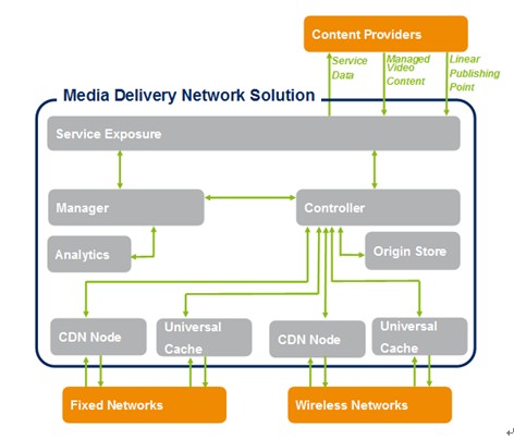 愛立信媒體交付網絡解決方案包含六大功能模塊。