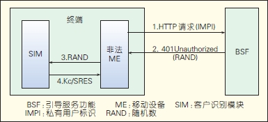 (4)HSS。所有的用戶安全設置、用戶號碼、認證向量都存儲在HSS中,HSS支持通過Zh接口,返回認證向量給BSF網元。