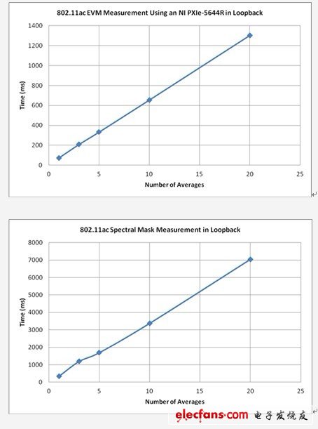 圖15顯示了在802.11ac中使用不同平均數執行EVM和頻譜屏蔽測試所需的測試時間。