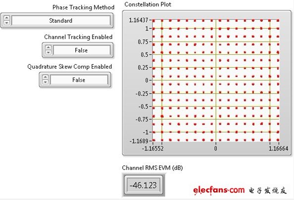 測試設備通常需提供比規范要求(如-32 dB用于256 QAM)高至少10 dB的測量能力,從而提供足夠的空間用于特征和產品測試。如圖7所示,NI PXIe-5644R可提供業界領先的EVM值。