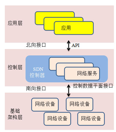 越來越龐大的網絡規模增加了運維、管理的復雜度,給運維、管理帶來了壓力。流量方向的靈活性、業務種類的多樣性,也使得對運維的要求越來越高。通過引入SDN智能化管理系統,可以提升用戶的應用體驗,實現云化管理,提供可視化的運維功能,提供智能化的管理功能,提供靈活、彈性的帶寬,保證數據的低時延和高安全性。SDN的架構圖如圖3所示: