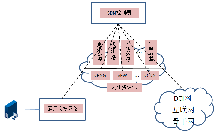 NFV采用虛擬化技術,將傳統電信設備的軟件與硬件進行解耦,基于通用計算、存儲、網絡設備實現電信網絡功能,提升管理和維護效率,增強系統靈活性,解決了現有專用通信設備造價昂貴、效率低下、更新換代不靈活等問題。初期考慮在IP城域網的匯聚層引入NFV,通過改造或引入X86架構體系,在通用硬件上部署虛擬寬帶網絡網關控制設備(vBGN)和虛擬內容分發網絡(vCDN)設備等產品,逐步實現設備集中化、虛擬化和池化。
