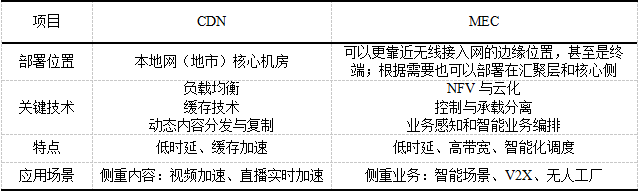 CDN應用場景的關注點是“分發加速”,而MEC不僅要“加速”,還擁有開放API(Application Programming Interface,應用程序編程接口)能力以及本地分析、計算、存儲等能力,讓網絡更加智能化。與CDN相比,MEC可以更靠近無線網邊緣,因此時延更小;CDN未來的演進方向之一是與邊緣計算的融合。MEC與CDN的對比如表2所示: