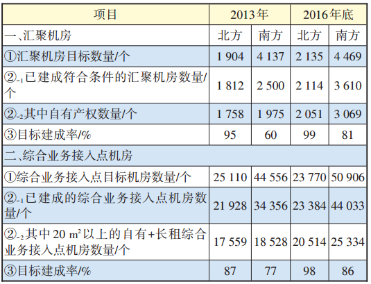 表1 匯聚機房和綜合業(yè)務(wù)接入點機房建設(shè)進展
