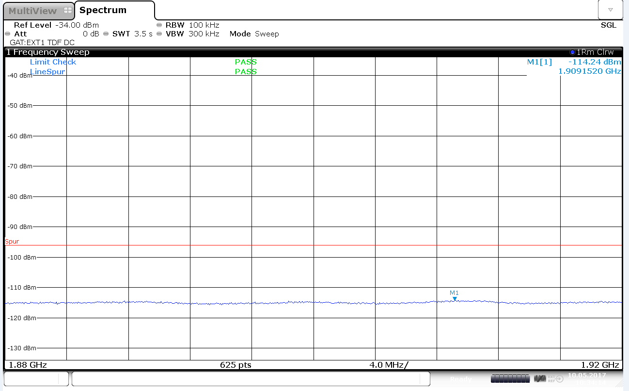 本文中選用的頻譜儀是羅德與施瓦茨R&S FSW26,根據其性能指標,底噪在頻率范圍(1 GHz—3 GHz):DANL-154 dBm/Hz,typ.-159 dBm。