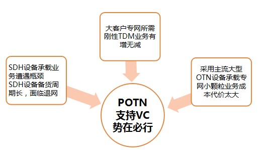各大運營商對于SDH的建設態度已經非常明確,原則上不會繼續擴大規模新建。運營商對SDH網絡的替換工作都在進行考證和研究,幾個發達省份的明確需求:采用支持VC功能、分組功能(P功能)的OTN設備來替換原有SDH網絡。該需求將在全國范圍內起到示范指導的作用。這也就加快了OTN設備的VC功能和分組功能(P功能)的支持開發。