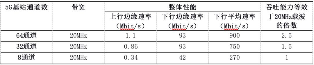 根據試驗網測試數據,針對不同的5G基站通道能力,實現反向開通后,20MHz載波帶寬吞吐能力可等效于4G載波倍數,見表2。