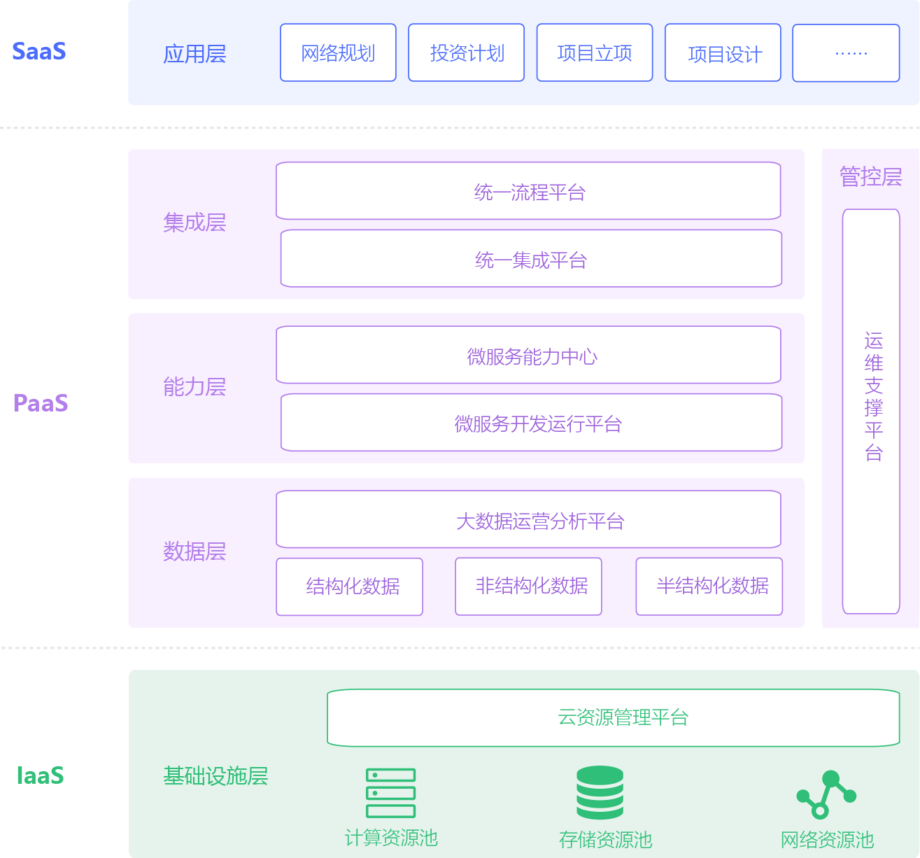 基于上述背景,中國移動集團啟動了集中化計劃建設系統的研發工作。集中化計劃建設管理系統是一個融管理, 業務, 架構于一體的管理系統,實現了計劃建設領域全生命周期流程覆蓋、全專業支撐,要求做到管理一體化、業務一體化以及架構一體化。