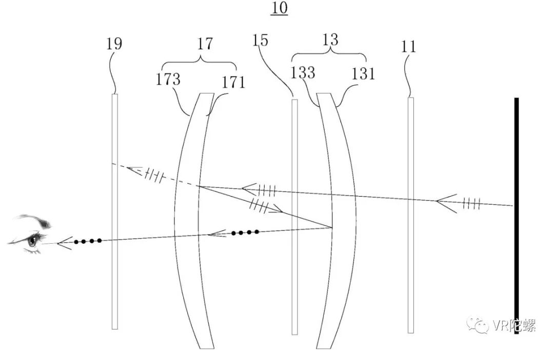譬如,據(jù)天眼查顯示,2018 年創(chuàng)維申請的一項名為“緊湊型放大光學(xué)模組及系統(tǒng)”的專利(CN208156310U),該專利設(shè)計就是典型的 Pancake 光學(xué)方案。