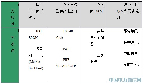當(dāng)前以太網(wǎng)技術(shù)研究的熱點如下表所示: