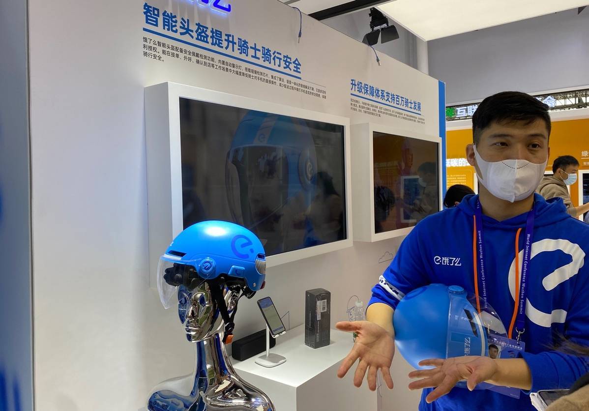 外賣騎手的安全問題一直備受關注。在博覽會上,記者看到一款集合了手機和頭盔功能的智能頭盔。它利用物聯網、大數據、人工智能等技術,在設計中加入傳感器和硬件模組,一方面可以幫助識別騎手的安全狀態,另一方面通過增加語音操作,減少對手機的直接操作,保障了騎手人身安全。