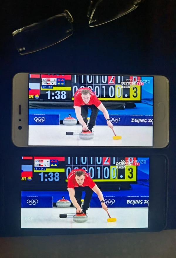 咪咕公司首次將HDR Vivid技術應用到了重大體育賽事直播中,覆蓋2020歐洲杯、東京奧運會、北京冬奧會、歐洲五大聯賽及UFC等7項頂級熱門賽事,全面提升畫面整體的色彩層次和畫質細節,并對運動畫面進行特殊渲染優化,使動態畫面更清晰,還原更真實的視覺效果。咪咕文化科技有限公司技術服務事業群總經理李琳強調:“直播中實現HDR Vivid的效果對實時化處理要求很高,否則可能渲染效果達不到或者效果不好,都會讓用戶的觀感體驗下降。”為此,咪咕視頻通過優化視頻解碼器,采用CPU多線程協同、視頻碼流解碼與HDR Vivid關鍵元數據提取同時進行的方式,探索了一種移動端HDR Vivid 渲染的解決方案,拓展了HDR Vivid標準的應用范圍。以咪咕視頻V5.9.9.00 版本為界,咪咕視頻在北京冬奧會之前對視頻軟件客戶端進行了重大更新,以支持HDR Vivid技術標準效果的更好呈現。