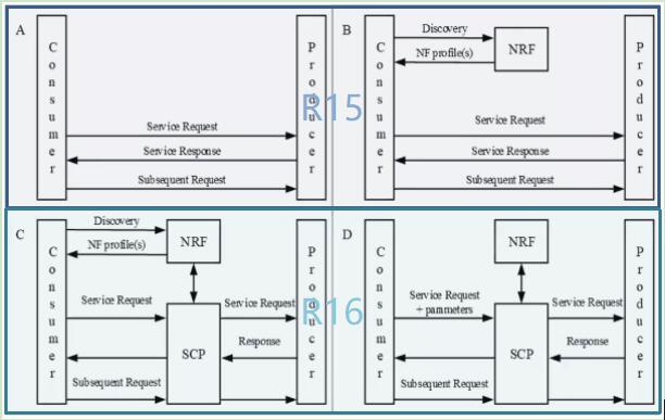 模式D:在R15版本基礎上,增加SCP網元,服務使用者去NRF尋址需要經過SCP,獲得服務提供者的地區后,和服務提供者之間的信令交互也通過SCP路由和轉發。