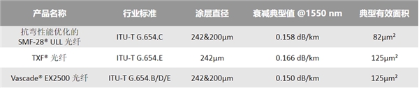 VascadeEX2500光纖同時提供200μm外徑尺寸的產品,這是業界推出的首款滿足G.654.E標準的200μm外徑光纖,能更好地支持高密度、大容量光纜的設計與制造。