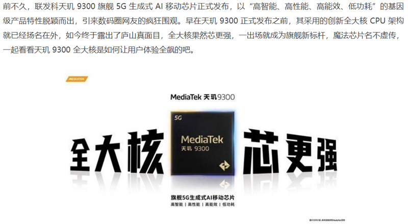 普通新聞 聯發科天璣 9300 驚艷亮相,以多個性能第一開啟全大核計算時代!