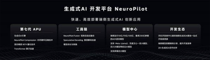 AI 開發平臺 NeuroPilot 加速端側生成式 AI 生態布局基于強大的 AI 算力和先進的內存硬件壓縮技術、AI 模型端側技能擴充等技術,天璣 9300 的 APU 790 將端側生成式 AI 的速度和廣度提升到了全新的水平。同時,為加速生成式 AI 在端側部署和普及,聯發科也憑借其 AI 開發平臺 NeuroPilot 構建了豐富的 AI 生態,從底層硬件到工具鏈、模型中心以及開發生態,助力生態快速、高效地部署端側生成式 AI 應用。