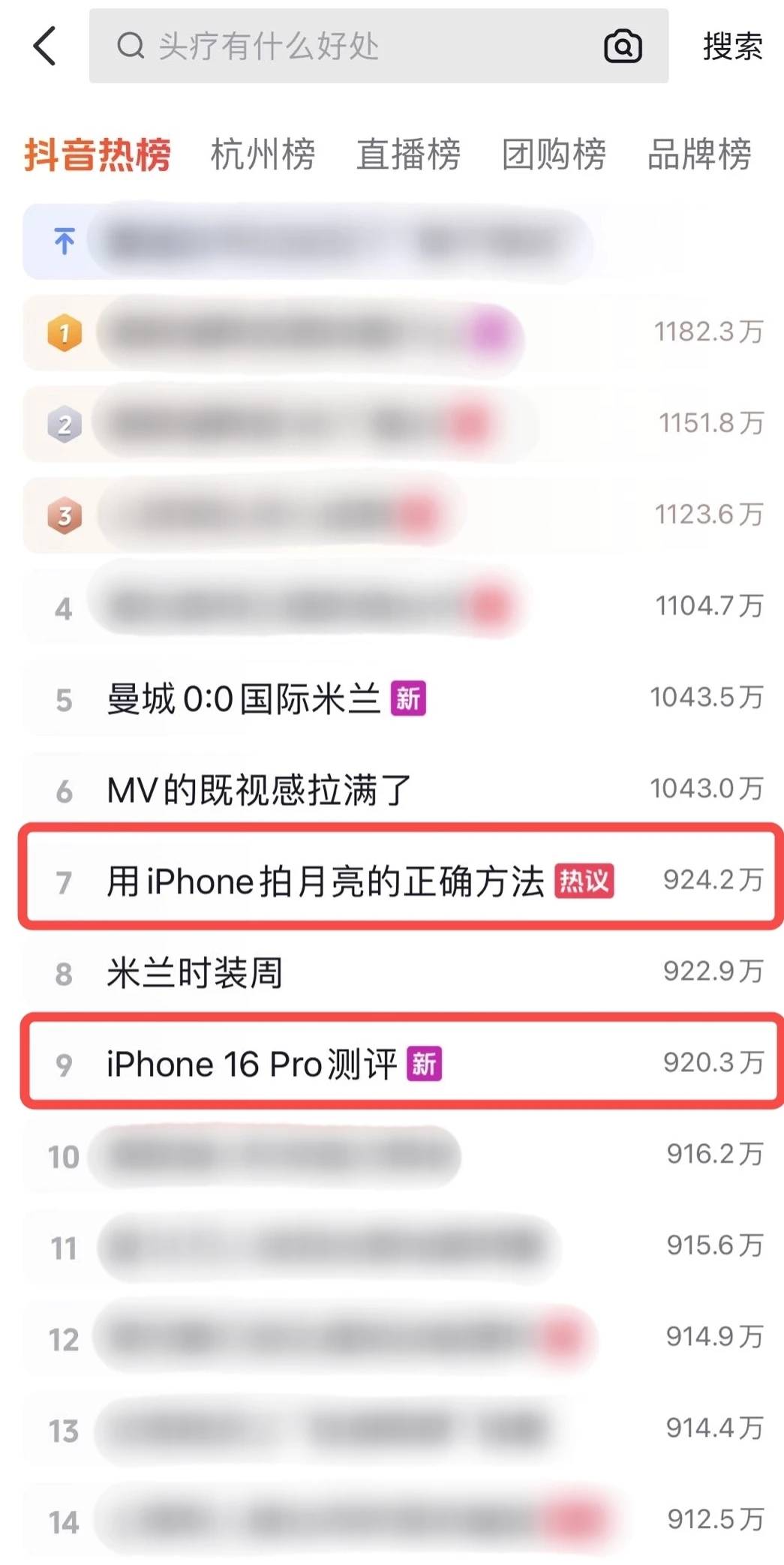 據抖音平臺披露,iPhone16系列首發搶購攻略等31個熱點瀏覽量超10億;鐘文澤、影視颶風、差評君等發布會解讀直播/評測短視頻優質內容讓#上抖音看iPhone 話題的瀏覽量突破8.2億。在抖音的放大下,蘋果2024年新品發布會這個科技圈的“春晚”,儼然成為了全民熱點事件。