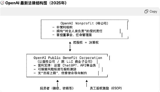OpenAI聯合創始人兼CEO奧特曼宣布,“我們決定將 OpenAI的營利子公司從“有限利潤責任公司”(capped-profit LLC)轉換為“公益性公司”(Public Benefit Corporation,簡稱 PBC)。這一結構在Anthropic 和 xAI等其他AI公司已被廣泛采用。PBC 結構允許公司在追求盈利的同時,明確地將公共利益納入其核心使命。”
