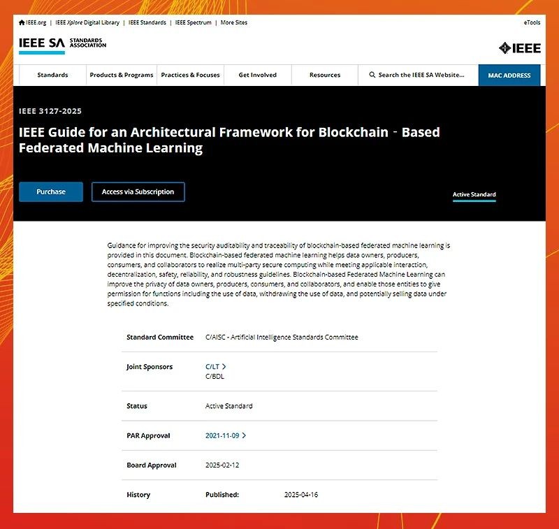 IEEE P3127標準,為基于區塊鏈的聯邦學習提供了統一的架構指導,顯著提升了多方聯合建模的安全性、可追溯性與隱私保護能力。這一標準有效破解了跨機構協作過程中“數據孤島”與“信任缺失”的難題,為政務、金融、醫療、工業制造等領域提供了安全可靠的數據共享與模型優化解決方案,推動了人工智能與區塊鏈技術深度融合,促進了AI技術在垂直行業的標準化與規模化應用進程。