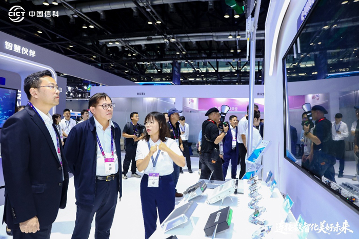 圖2:業內人士到訪中信科智聯展臺參觀交流