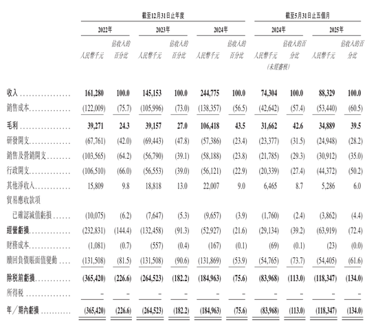 招股書顯示,云跡科技2022年、2023年、2024年營收分別為1.61億元、1.45億元、2.45億元,同期利潤分別為-3.65億元、-2.65億元、-1.85億元,且公司在招股書中表示,預計截至2025年12月31日止年度的凈虧損將略有增加。