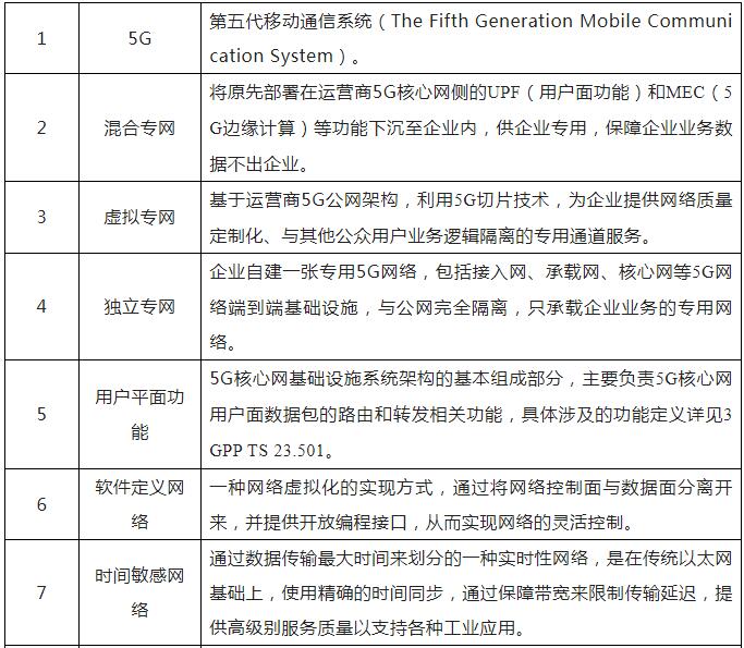 1. 5G網絡建設。支持企業采用虛擬專網、混合專網方式部署5G網絡,加快用戶平面功能(UPF)等5G核心網元建設,同步部署相應的安全機制和措施,強化生產現場5G網絡能力。鼓勵企業基于已獲得許可的無線電頻率,探索5G獨立專網,創新靈活多樣的5G網絡建設服務模式。