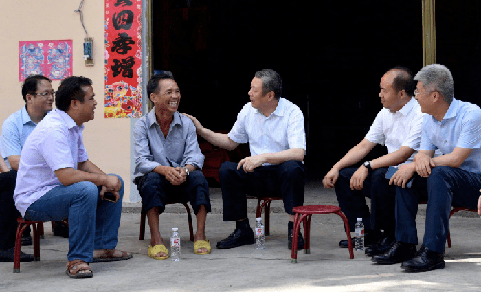 中國聯通集團黨組書記、董事長王曉初(右三)一行在貴州省冊亨縣慰問貧困群眾